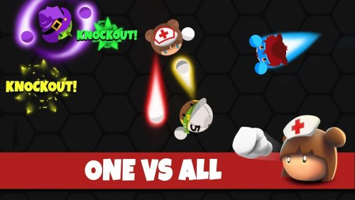 io Boxing Arena — отправляйте на боксерскую арену в IO игре, где будет очень много игроков. Возьмите под управления маленького бойца, который хочет стать чемпионом и отправляйтесь на бой. Деритесь против других претендентов на чемпионство нанося удары специальной перчаткой, которая может отлетать на определенное расстояние от героя. У каждого игрока будет шкала жизни, которая будет складываться из нескольких полосок. Одна сможет выдержать только одно попадание противника — чем больше у вас будет их, тем больше вы выдержите ударов. Увеличить их количество вы сможете, собирая специальные разноцветные точки, которые будут повышать уровень персонажа. При переходе на новый этап вам будут добавлять новую полоску к жизни.