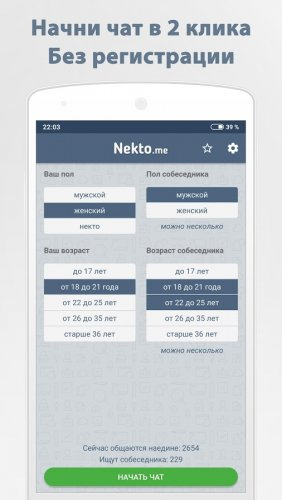 Хотите найти интересного собеседника или просто познакомиться с незнакомым человеком? Все это можно в анонимном чате NektoMe на Андроид.