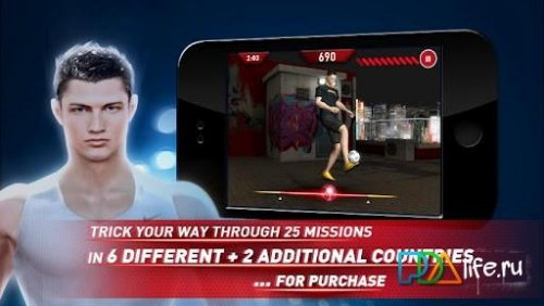 Вы будете играть талантливой звездой футбола - Криштиану Роналду, исполняя сложные финты, а также принимать участие в турнирах по футбольному фристайлу.