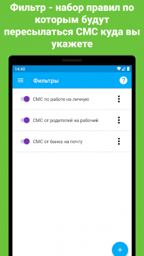 SMS Forwarder позволяет систематизировать СМС данные, путем настройки различных фильтров. К примеру, настроив данную программу под свои нужды, вы сможете избавлять от различного спама, установить автоматическую рассылку сообщений с одинаковой информацией, что в свою очередь упростит вашу работу и сэкономит много времени. Это особенно полезно для бизнеса, где требуется регулярно отправлять однотипные сообщения клиентам или сотрудникам.