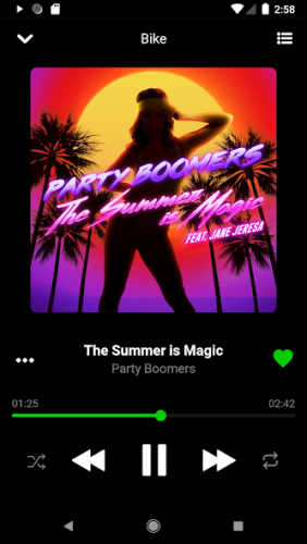 От вас требуется только загрузить любимые треки, а все остальное плеер возьмет на себя. Сервис предоставляет своим пользователям доступ к огромной картотеке аудиозаписей на любой вкус, жанровое многообразие которых оценят даже самые привередливые меломаны. В дополнение к большой музыкальной коллекции, плеер обладает интерфейсом, благодаря которому вы сможет выбрать для себя те жанры музыки, которые интересуют вас в большей степени. А удобный поиск по названию и возможность добавлять музыку в избранное, позволит вам никогда не расставаться со своим смартфоном.