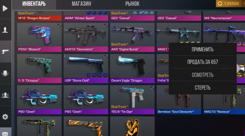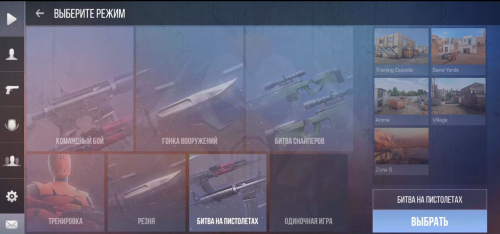 Если сравнить игру с подобными, то можно сразу заметить, что первое знакомство с интерфейсом и разделами уже показывает, что это качественный проект. Присутствуют все необходимые настройки и предметы, особенно это касается выбора оружия и наклеек.