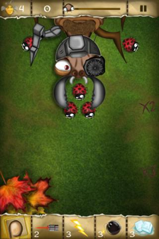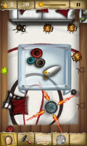 Насекомые будут лезть сверху экрана, и вам нужно их давить пальцем, молотком, мухобойкой и другими предметами.
