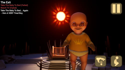 Проходя игру с элементами хоррора от первого лица, вам предстоит выполнять задачи, которые будут появляться в левой части экрана. Ваши обязанности поэтапно расписаны, а об их успешном выполнении свидетельствует улыбка благодарности подопечного. Нажимайте на виртуальный джойстик, чтобы перемещаться по сценарию. Вы также можете настроить обзор камеры, воспользовавшись кнопками в правом углу экрана. Изучайте квартиру, взаимодействуйте с различными предметами и выполняйте миссию за миссией. Прохождение испытаний приблизит вас к разгадке странного поведения младенца. В игре The Baby In Yellow вы столкнетесь не только с пугающей атмосферой, но и с неожиданными поворотами сюжета.