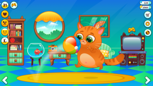 Чтобы наполнить жизнь своего любимца комфортом, необходимы золотые монеты. Их можно получить, принимая участие в мини-играх. Выигрывая, геймер получает больше возможностей для своего котика! Развлечений в приложении более 30, поэтому можно без проблем отыскать свои самые любимые из них.