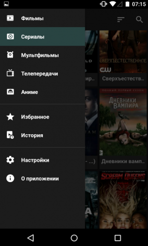 Здесь представлено множество качественных сериалов, мультфильмов и фильмов, удобно разделённых на категории. Постоянное обновление базы данных делает приложение популярным среди пользователей.