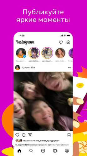 Instagram показывает новости, фотографии и истории ваших друзей. Каждый может комментировать картинки, ставить лайки или делиться с окружающими. Вкладка «популярное» содержит наиболее известные фото за последнее время. Используя ленту, можно узнать, что нынче в моде. Она дает возможность снимать короткие ролики длиной 15 секунд. Их можно корректировать с помощью встроенных фильтров и добавлять в свою ленту. Данный контент можно опубликовать в другом приложении или поделиться в другой социальной сети, нажав всего лишь одну кнопку.