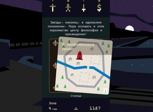 Игрок берет на себя роль королевы, управляющей государством, распределяющей ресурсы и расставляющей приоритеты.