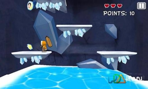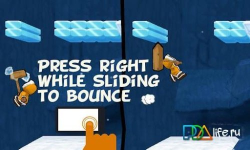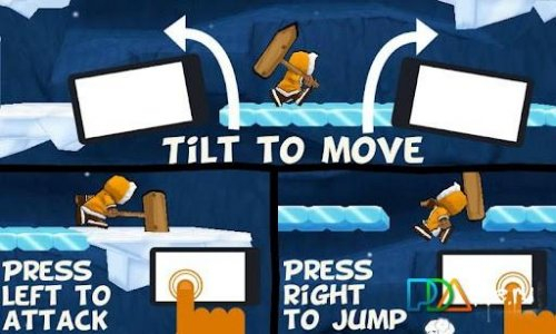 Вас ждут 50 уровней. Управлять героем нужно с помощью акселерометра. Наклоняя в правую сторону, ваш герой будет двигаться в нужном направлении. В левом углу экрана есть невидимая кнопка - это мощный удар, которой можно уничтожить противника, а в правом углу находится прыжок и серия ударов молотком, чтобы пробить лед над головой.