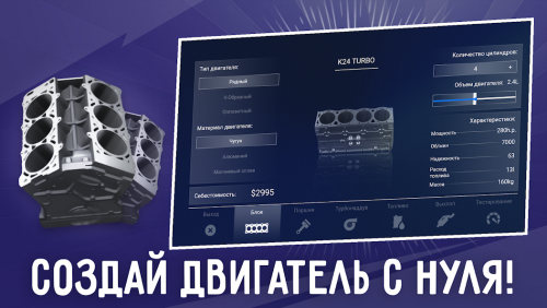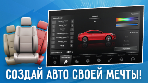 Однако конструирование и моделирование авто — еще не все, что может предложить новый симулятор. Продвижение своего продукта на мировом рынке — вот что не менее интересно! Нужно создать настоящий шедевр, который будет конкурировать с авто, уже всем известными.