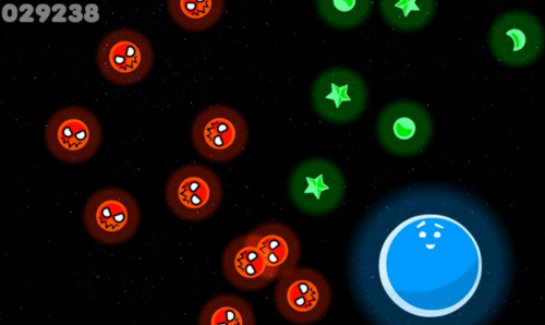 Некоторые враги после взрыва будут раскладываться на несколько копий. Их можно отогнать или уничтожить. Собирайте звезды и другие штуки, которые появляются после подрыва, для этого возьмите свой мячик и наведите его на нужные предметы.