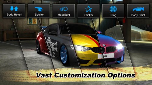В ней доступно множество автомобилей от известных мировых брендов, которые возможно улучшать и прокачивать, чтобы достичь максимальной результативности и выиграть гонки.