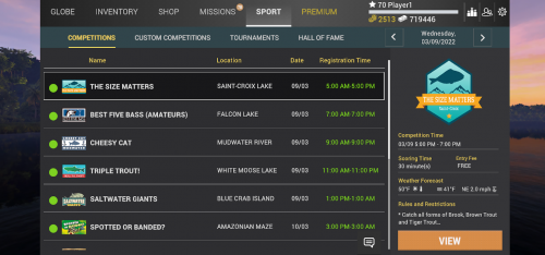 Вы можете не только рыбачить для себя, но и соревноваться с другими игроками. В игре постоянно происходят разные турниры, а возле каждого из 20 водоемов есть своя таблица лидеров по пойманной рыбе. В симуляторе доступно более 130 видов рыб с уникальным поведением.