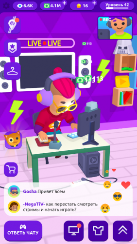 В игре самое главное – постоянно развивать собственный канал на заработанные деньги. Так будет повышаться качество ваших стримов, и аудитория зрителей будет только расти. Заработок тоже будет увеличиваться не только за счет просмотров, но также и за счет донатов.