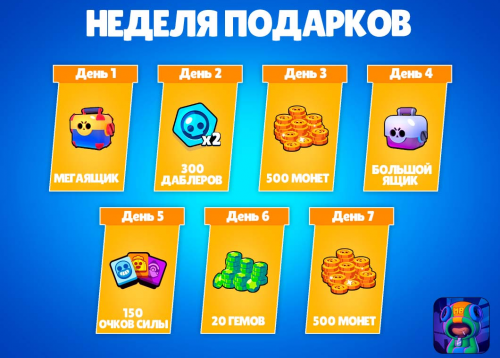 - Подарки в магазинах (Пины, Бойцы, Значки, Мегаящики).
