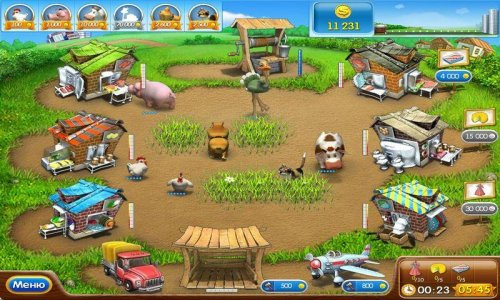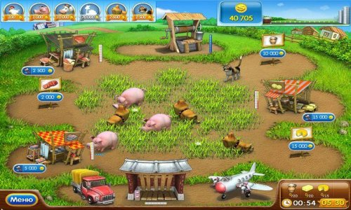 В игре представлены разные животные: свиньи, коровы, куры, а также страусы, собаки и кошки. Куры дают яйца, которые затем можно превратить в муку и порошок для выпечки пирогов. Свиньи обеспечивают мясо для приготовления стейков и их последующей продажи. Коровы снабжают молоком, из которого можно изготовить масло и выгодно продать. Страусы, как самые дорогие животные, приносят ценные яйца, способные приносить большую прибыль. Кошки автоматически собирают урожай, а собаки защищают от медведей, которых можно также продать. Игра радует красочной графикой, анимацией и приятной музыкой.