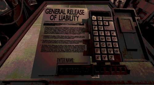 Главной фишкой является напрягающая атмосфера подпольного казино, в котором крупье выступает отвратительный монстр. На старте вам дают подписать некий договор, в котором вы соглашаетесь с ответственностью за происходящее за столом, и это вполне логично, так как шанс выживаемости составляет 50%. А далее начинается сама игра на выбывание.