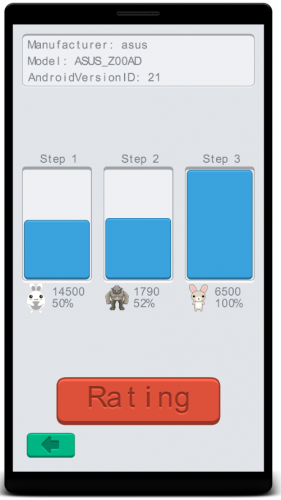 Софт проводит несколько вариантов тестов Android устройства, путем изменения анимации, интенсивности возникающих объектов и других манипуляций, позволяющих дать обширный анализ работоспособности системы. Вы самостоятельно можете регулировать количество зайцев на экране, и если вам кажется, что ваш смартфон справляется с нагрузкой, то постепенно добавляете очередную порцию зверей. Как только просадка в производительности будет критической, то тест можно считать завершенным. Результатом работы бота Зайцы ФПС выступает количество очков, которое выводится при завершении тестировки.