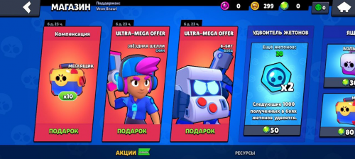 В плане геймплея и непосредственно самих боев Veon Brawl абсолютно идентичен BS. В игре доступны самые популярные Бравлеры, руками которых вы будете сражаться на многопользовательских аренах. За победу вы будете повышать свой рейтинг, а также зарабатывать игровую валюту. Также присутствуют большие и малые ящики, получение которых максимально упрощено. В случае с большим боксом потребуется одержать 10 побед в матчах, а для малого ящика нужно заработать 100 токенов. С их помощью вы сможете открыть дополнительных бойцов, очки силы и массу других полезных фишек для вашего героя.