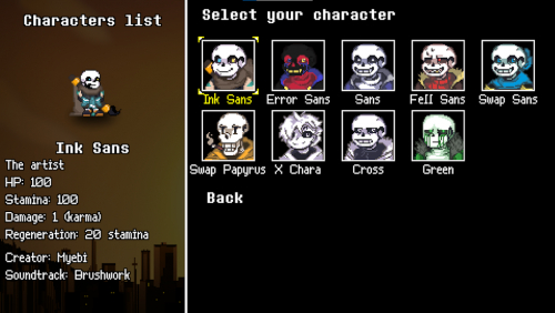 Геймплей в Underverse Battles предлагает прохождение сюжетной истории, согласно которой вы играете за скелета по имени Инк Санс. Ваша душа была похищены, и теперь ее нужно вернуть во чтобы то ни стало. Вам предстоит путешествовать по огромному миру Undertale, взаимодействовать с другими героями, и конечно же сражаться за свои цели. Боевая система построена на вариативных атаках, и пассивных способностях, которые нужно правильно применять согласно сложившейся обстановке.