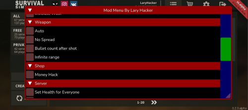 Survival Simulator с Читами от Лари Хакер – это новая модификация популярного симулятора выживания на затерянном острове.