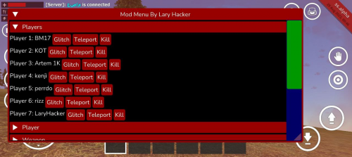 - мгновенные убийства игроков на сервере;