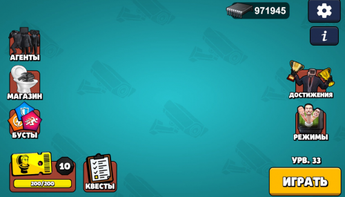 Игровой процесс в Toilet Agents максимально казуален. Собирайте собственную команду из самых перспективных бойцов, куда войдет ТВ Вумен, Спикер и Камера Вумен, и приступайте к прокачке их скилов. Каждый камероголовый уникален, и чтобы максимально раскрыть потенциал каждого из них, вам потребуются чипы. Чипы – основной ресурс, и чтобы открыть самых сильных персонажей, среди которых ТВ Мен Титан, Камера Мен Титан потребуется накопить их огромное количество.