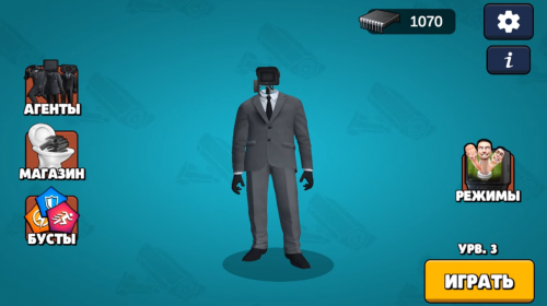 Каждое сражение в данном экшене представляет собой поэтапные волны унитазов, которые нужно лихо лупить руками и ногами. Противники также наносят ощутимый урон, который можно нивелировать употреблением аптечек. Каждое ваше убийство накапливает чипы, но если вам не будет хватать на следующего героя, вы всегда сможете перейти в режим “Фарм Чипов” и упростить себе прокачку Агента.