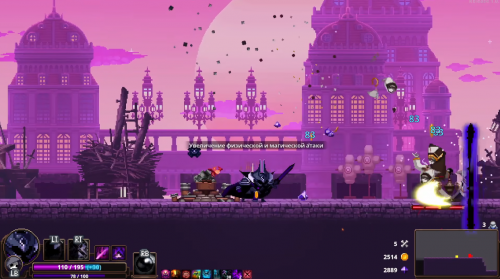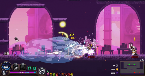 Атакующие приемы в Skul не заканчиваются классическими ударами. От вашего выбора зависит ветка прокачки, в которой будет специализироваться скелет. И если вы не являетесь фанатом ближнего боя, то смело используйте магию и уничтожайте врагов на расстоянии.