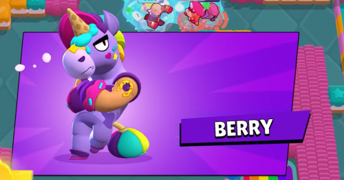 Berry – эпический герой, одетый в костюм единорога, который станет частью нового дополнения. Фишкой бойца является нанесение урона мороженым, которое не только будет ослаблять врагов, но также и лечить ваших соратников. Супером является высокоскоростная подбежка, во время которой боец разбрасывает лужи с массовым уроном.