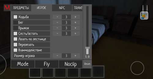 - Читы на полет и прохождение через сплошные препятствия (No Clip);