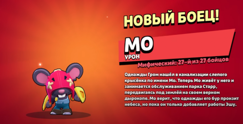 Mo — маленькая крыса, обитающая в канализации парка. Новый боец, впрочем, как и все, обладает двумя видами характеристик: основными атаками и суперспособностями. В обычном виде его боевой стиль очень схож со стилем Спайка — метательные камни отскакивают и наносят осколочный урон.