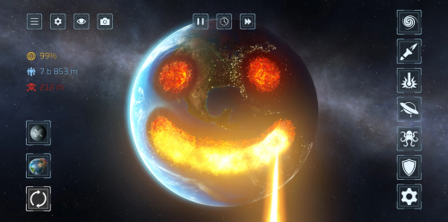 У вас есть возможность испытать свои разрушительные таланты, уничтожая планеты различными способами. Арсенал невероятен и включает в себя кометы, метеоры, лазеры, атомные бомбы и даже гигантские сингулярности.