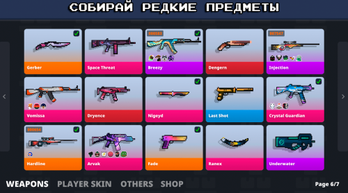 Каждый “ствол” в игре можно приобрести в магазине, а также кастомизировать с помощью скинов, что позволяет выделиться в бою. Кастомизация не только улучшает внешний вид, но и может повлиять на некоторые ТТХ оружия, открывая новые тактические приёмы.