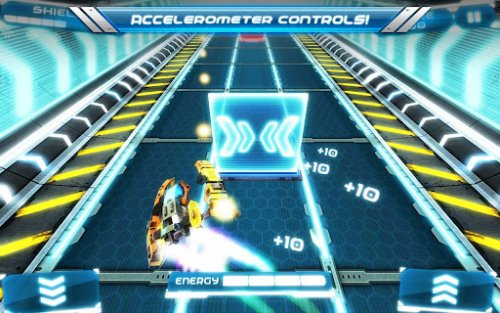 Ion Racer - покажите свои ловкость управления фантастическим летательным автомобилем объезжая красные щиты и собирая запасы энергии.