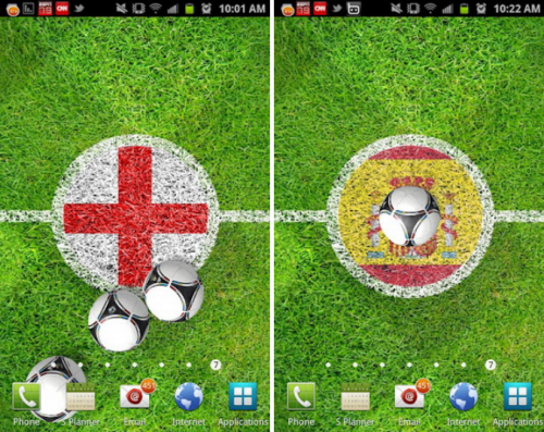 Сделайте свой смартфон праздничным - установите яркую заставку с флагом странны, за которую вы болеете. На экране в центре поля будет изображен флаг государства, который через некоторое время изменится на официальную символику Евро 2012 и Adidas.