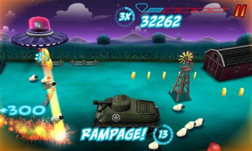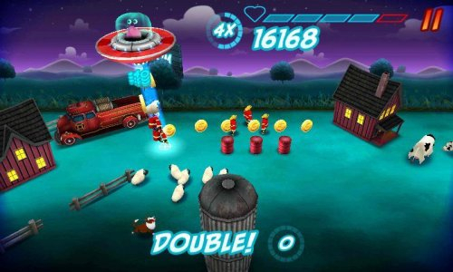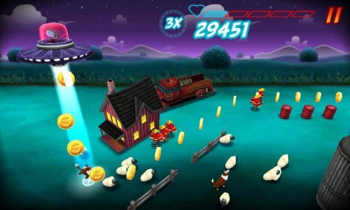Поглощайте овец, коров, свиньей и работников фермы, а также собирайте монеты, раскиданные вдоль дороги. Осторожно обходите дома, заборы, автомобили и другие здания, так как направив лазер на них, вы будете тратить свою жизнь и можете упасть.