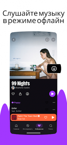 Также он идеально подходит для тех, кто в дороге или в местах с ограниченным доступом к интернету. Режим офлайн позволяет загружать любимые песни или альбомы и слушать их без подключения к сети. Эта функция особенно полезна для путешествий, занятий спортом или просто экономии мобильных данных.