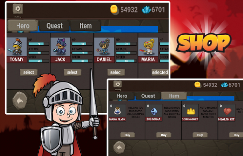 Каждый раз проходя уровни вы будете получать золотые монеты, которые можно потратить в главном меню на усовершенствование бойцов. Им можно повысить уровень наносимого ущерба и жизни.
