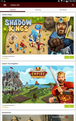 Среда для запуска некоторых приложений на Android - Adobe AIR.