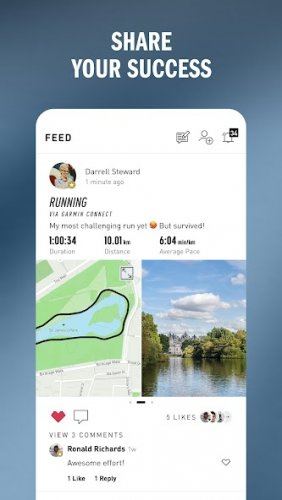 Adidas Running помогает создать коллективное настроение благодаря вызовам и глобальным челленджам. Вы можете соревноваться с друзьями, участвовать в виртуальных гонках и делиться достижениями. А функция живых «лайков» позволяет получать поддержку от сообщества в реальном времени, даже во время тренировок.