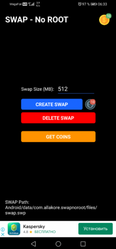 SWAP - No ROOT – уникальная программа, которая позволяет вам повысить производительность вашего Android устройства, создавая SWAP-файл без необходимости рутирования.
