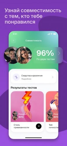 Приложение предлагает множество инструментов для глубокого анализа личности. Вы можете пройти тесты, разработанные профессиональными психологами, чтобы лучше понять свои сильные и слабые стороны при выборе партнера. Программа позволяет не только анализировать ваши данные, но и использовать их для проверки совместимости с близкими друзьями, и новыми знакомыми. Кроме того, для удобства общения доступны игровые вопросы и шаблоны, которые добавляют диалогам легкости и непринужденности.