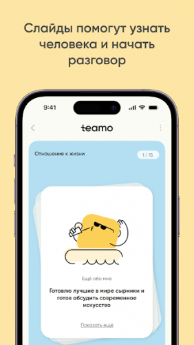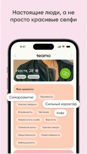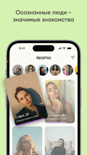 Teamo – современное приложение для знакомств, которое помогает находить идеальную пару с учетом психологической совместимости.