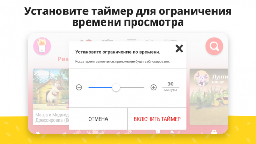 - Таймер ограничивает экранное время, устанавливая здоровый баланс;