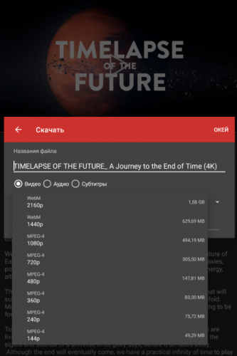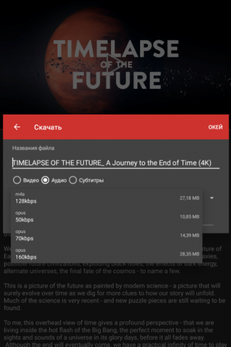 - Фоновое воспроизведение – продолжайте слушать музыку или подкасты из видео.