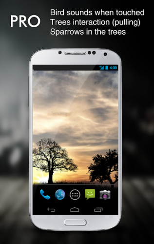 Смотрите на своем главном экране на восход солнца и полет птиц. Птицы могут реагировать на прикосновения к дисплею и поменять направление своего полета. Если вам надоело стандартное изображение в основном меню смартфона, смело устанавливайте данное приложение.