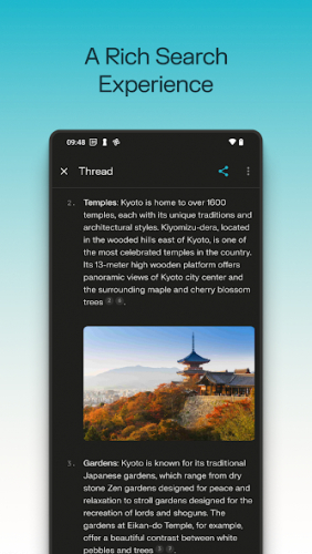 Благодаря интеграции с передовыми алгоритмами искусственного интеллекта, Perplexity позволяет искать информацию и одновременно получать развернутые ответы на основе множества источников.