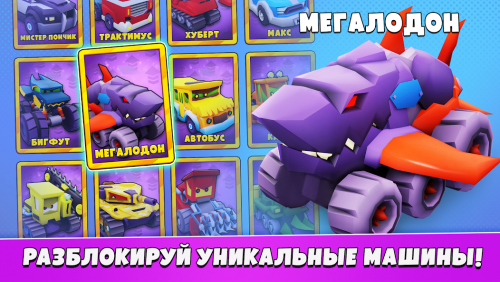 В "Car Eats Car 5" вы можете постоянно улучшать свои тачки, попутно собирая ресурсы на уровнях. Эти апгрейды в свою очередь откроет доступ к новым мощным возможностям - повышению скорости, улучшению брони или усилению атак. Кроме того, система прогресса мотивирует на активное изучение механик игры и подталкивает к применению более сложных тактик, чтобы быть на шаг впереди конкурентов.