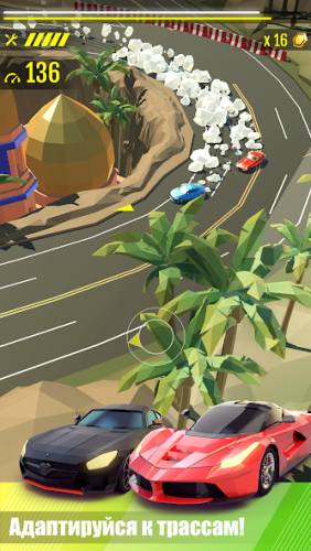 Каждая трасса требует чёткого расчёта и уверенности за рулём, а разнообразие машин, таких как Muscle, Street, Super или Off-Road, позволяет выбирать подходящий автомобиль под стиль игры. Каждая машина ощущается по-своему, что делает гонки ещё более интересными. Трассы наполнены сюрпризами вроде коротких путей и ускорителей, а погодные эффекты только добавляют реализма происходящему на экране.